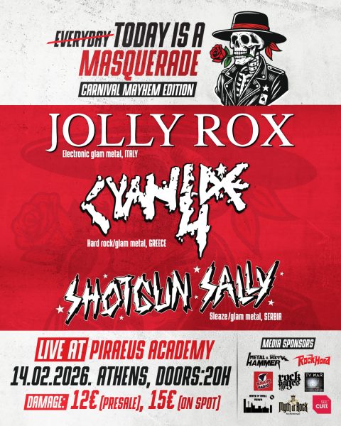 Το Σάββατο 14 Φεβρουαρίου 2026, το Piraeus Academy Club υποδέχεται μια glam/sleaze βραδιά με τους Jolly Rox, Cyanide 4 και Shotgun Sally.