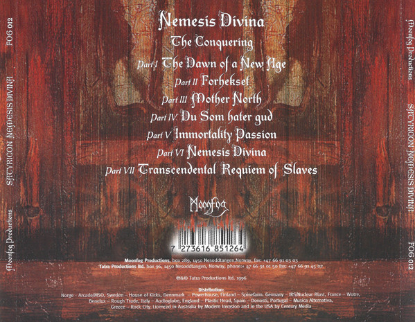 Το “Nemesis Divina” («θεία εκδίκηση» στα Λατινικά) ξεκινά με το “The Dawn of a New Age” και στα πρώτα δευτερόλεπτα ακούς τον Satyr να φωνάζει “This is Armageddon!”. Και αυτό που έπεται είναι κυριολεκτικά αυτό το πράγμα! Από τα πρώτα riffs του εναρκτήριου κομματιού ήταν πρόδηλο πως αυτό που θα ακολουθούσε θα ήταν μεγαλειώδες. Κομμάτια σαν το “Forhekset”, “Du Som Hater Gud” και το ομώνυμο “Nemesis Divina” λάμπουν ακόμα και σήμερα. Το θρυλικών διαστάσεων δε “Mother north”, είναι βγαλμένο από άλλο σύμπαν. Τα επιθετικά riffs βρίσκονται σε πλήρη ισορροπία με τις εκπληκτικές μελωδίες μέσα στο δίσκο. Το παραδοσιακό black metal συνυπάρχει αρμονικά με κάποια progressive στοιχεία (βλέπε στη μέση του “Forhekset”, όπου η μπάντα έκανε spoiler τα μονοπάτια που θα κινούταν στον επόμενο δίσκο).