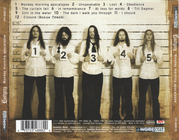 Δεν είναι τυχαίο ότι πήραν παραγωγό τον Sanken Sandqvist, ο οποίος ποτέ στο παρελθόν δεν είχε δουλέψει με metal σχήματα έχοντας αυτόν το ρόλο και το γεγονός αυτό, είναι εμφανές. Το θέμα με το “Monday morning apocalypse”, δεν είναι ότι είναι «εμπορικός», αλλά ότι για πρώτη φορά περιέχει τραγούδια που μάλλον δεν είχαν λόγο ύπαρξης σε δίσκο των EVERGREY. Υπάρχουν το ομώνυμο, εναρκτήριο τραγούδι, το “Lost” (που για κάποιον λόγο μου θυμίζει FATES WARNING του “Inside out”) ή το “Obedience”, αλλά από κει και πέρα, λίγα τραγούδια στέκονται στο ύψος της υπόλοιπης δισκογραφίας του σχήματος.
