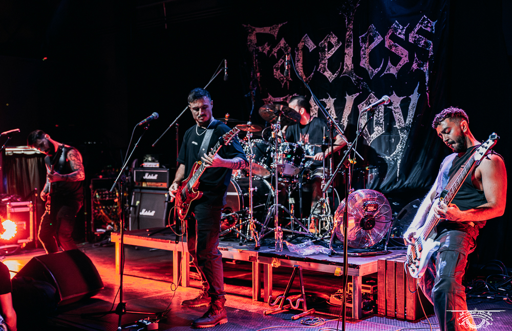 Οι FACELESS ENVOY που κατά το πρόγραμμα ξεκίνησαν τη βραδιά, ήταν η μόνη μπάντα με την οποία δεν είχα επαφή από τις 3 του line up. Φρόντισαν βεβαίως-βεβαίως να “συστηθούν” εκεί που μετράει περισσότερο: επί σκηνής. Το ύφος τους είναι κάπου εκεί που συναντιούνται οι SEPULTURA του “Chaos A.D.”, οι BLOODBATH (κυρίως ημερών Akerfeldt) και οι OPETH στα καθαρά του τραγουδιστή/κιθαρίστα. Ιδιότυπο μείγμα θα πω εγώ, έχει ένα μουσικό ενδιαφέρον, οι ίδιοι είναι δεμένοι παίκτες ενώ το υλικό τους από το “Memoirs within” (2026) ντεμπούτο full-length, είχε κάποιους που ήδη το ήξεραν. Η εντύπωση που μου άφησαν είναι θετική, ενώ θεωρώ πως ξεκάθαρα έχουν δυνατότητες και μια καλή βάση πάνω στην οποία μπορεί αυτό το μείγμα να δέσει παραπάνω.
