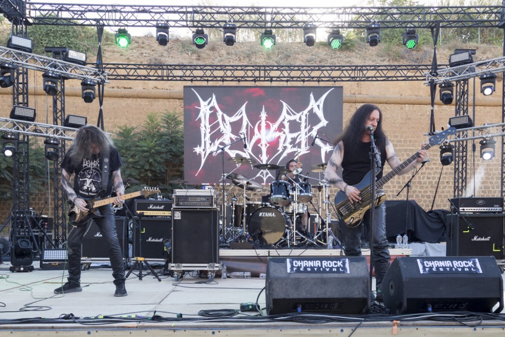 Η πρώτη μέρα ξεκίνησε στις 26 Ιουλίου σε μία, φυσικά, πολύ ζεστή μέρα, με τους Αθηναίους power metallers BLACKSUN να ανοίγουν τη πρώτη μέρα του φεστιβάλ στις 17:30. Μπορεί ο ήλιος να είχε αρχίσει κάπως να πέφτει αλλά είναι ένα δύσκολο και επώδυνο εγχείρημα να παίζεις τέτοια ώρα κάτω από τον καυτό ήλιο. Όπως και να ‘χει, το συγκρότημα ανέβηκε ακριβώς στην ώρα του με εμφανή την όρεξη για να μοιραστεί παλιότερα και καινούργια τραγούδια με το λιγοστό κοινό που είχε αρχίσει να εισέρχεται στην Ανατολική Τάφρο στο κέντρο των Χανίων. Οι BLACKSUN υπάρχουν από το 1993 αλλά μετά από πολλά χρόνια ανακατατάξεων και με αρκετά χρόνια στον πάγο, κυκλοφόρησαν το 2015 το πρώτο τους EP και το 2019 το πρώτο full length, “Seed of hate”. Η τωρινή τους περιοδεία γίνεται στο πλαίσιο της προώθησης του νέου τους άλμπουμ “Karma somnium” από το οποίο παρουσίασαν μερικά κομμάτια στα Χανιά. Η μπάντα λοιπόν, με μπροστάρη τον τραγουδιστή τον Μάνο Ξανθάκη, έναν ξεκάθαρα έμπειρο frontman και εντυπωσιακό τραγουδιστή, ανέβηκε στις 17:30 με το “Last chapter”. Από την αρχή όμως υπήρξαν προβλήματα καθώς για ολόκληρο το κομμάτι το μικρόφωνο δεν λειτουργούσε. Η μπάντα όμως, δείχνοντας επαγγελματισμό, δεν σταμάτησε ούτε έδειξε να ενοχλείται και έβγαλαν το πρώτο κομμάτι χωρίς φωνή. Το πρόβλημα συνεχίστηκε για λίγο και στο δεύτερο τραγούδι αλλά μόλις ακούσαμε την στεντόρεια και οπερατική φωνή του Ξανθάκη, όλα άρχισαν να πάνε ρολόι για το γκρουπ που έπαιξε σωστά, με αυτοπεποίθηση, προβαρισμένο και δεμένο για ένα μικρό κοινό που τους χειροκροτούσε και επευφημούσε καθ ‘όλη τη διάρκεια του σετ τους που διήρκεσε λίγο λιγότερο από μισή ώρα. Αν και δεν μπορούσα να κάτσω για πολύ κάτω από τον ήλιο, προτιμώντας να μείνω στη σκιά του merch stand, πρέπει να πω πως οι BLACKSUN μου έκαναν καλή εντύπωση με το – αντιπροσωπευτικό της ελληνικής σκηνής – power metal τους που εκτελέστηκε πολύ καλά εκεί απ’ όπου όλοι οι μουσικοί κρίνονται. Το ζέσταμα λοιπόν ήταν καλό και ήμασταν έτοιμοι για το δεύτερο γκρουπ της ημέρας, τους βετεράνους της Hellenic black metal σκηνής, DEVISER.