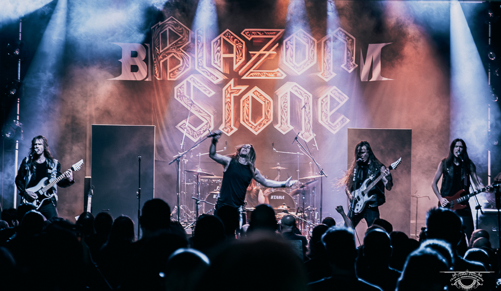 Έτσι, μπροστά σε αρχικά περιορισμένο αλλά γρήγορα αυξανόμενο κοινό, οι Σουηδοί ανέβηκαν στη σκηνή και παρέδωσαν μια ανεπανάληπτη εμφάνιση. Μιλάμε, προφανώς, για τους «κληρονόμους» των RUNNING WILD και ναι, υπάρχουν αρκετοί «κολλημένοι» σαν και του λόγου μου (με την καλή έννοια) που βρίσκουμε αποκούμπι σε οτιδήποτε θυμίζει το συγκεκριμένο ύφος, ειδικά από τη στιγμή που οι ίδιοι οι RUNNING WILD είτε δεν τους έχουμε δει ποτέ είτε έχουν κινηθεί συνθετικά σε πιο ρηχά νερά τα τελευταία χρόνια. Οι BLAZON STONE λοιπόν δεν αποζημίωσαν μόνο αυτό το κοινό, αλλά όλους όσοι ήθελαν να ακούσουν αυθεντικό, «αλήτικο» heavy metal με πειρατική θεματολογία. Η ενέργειά τους ήταν στα ύψη, με μπροστάρη τον κιθαρίστα και εγκέφαλο της μπάντας, Cederick Forsberg, ο οποίος δεν σταμάτησε στιγμή να κινείται, να προσφέρει εξαιρετικά solo, να συμμετέχει στα φωνητικά και να μεταδίδει τον ενθουσιασμό του. Εξαιρετικός και ο drummer Kalle Löfgren, πραγματικό «πολυβόλο», που δεν άφησε περιθώρια αμφισβήτησης για την απόδοσή του.