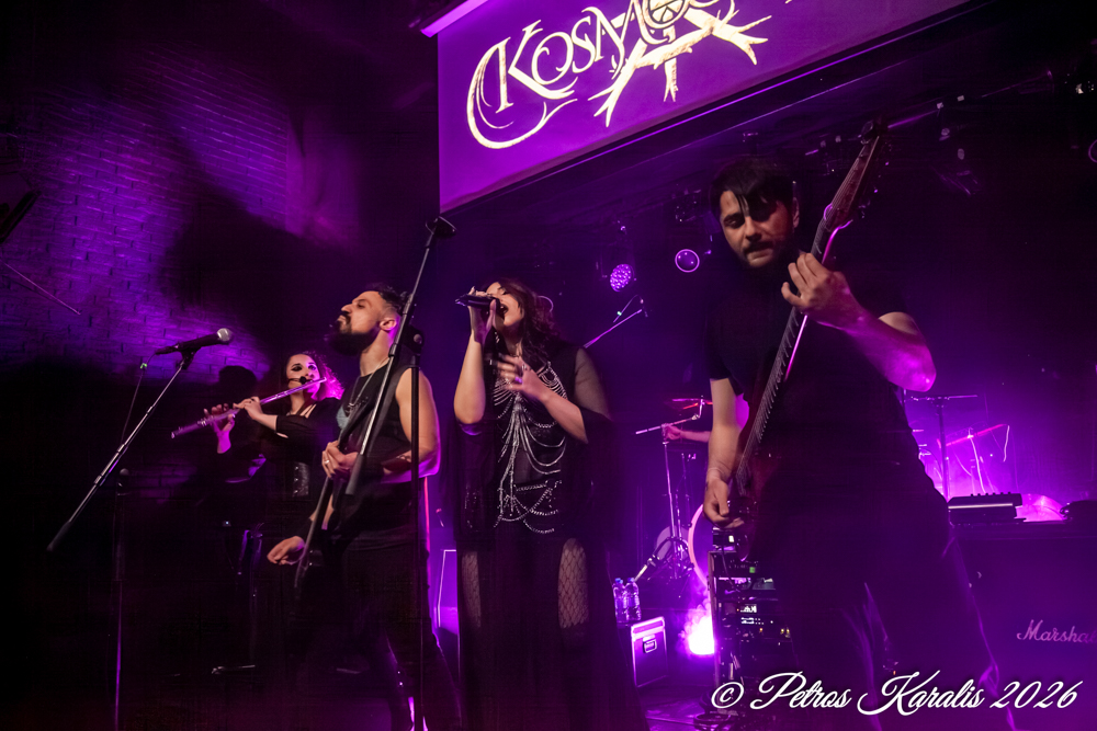 Το φεστιβάλ έκλεισε με τους Αθηναίους KOSMOGONIA που δραστηριοποιούνται από το 2015, παίζοντας folk / melodic death metal με μυθολογικά θέματα (Αρχαία Ελλάδα, θεοί, ιστορία) και το χαρακτηριστικό φωνητικό format beauty and the beast. Παρότι οι στίχοι βασίζονται στην ελληνική μυθολογία, η μουσική δεν έχει έντονο ελληνικό χαρακτήρα, και θυμίζει περισσότερο ανατολικοευρωπαϊκή folk metal σκηνή. Είναι σαν ακούω τους ELUVEITE, ENSIFERUM ή EQUILIBRIUM να τραγουδάνε για τον Διόνυσο ή την Πυθία κι εδώ ακριβώς βρίσκω ένα θεματάκι. Για μένα θα ήταν πιο πρωτότυπο, πιο ψαγμένο, αλλά και πιο αυθεντικό, εάν χρησιμοποιούσαν στοιχεία από την αρχαία Ελληνική η την Βυζαντινή μουσική. Ακούγεται δύσκολο και εξειδικευμένο, μιας που η αρχαία Ελληνική μουσική δεν έχει εξερευνηθεί πολύ, αλλά μου έρχονται στο μυαλό αμέσως σχήματα όπως Έλληνες DEAMONIA NYMPHE αλλά και οι DEAD CAN DANCE που αναπαράγουν και δημιουργούν την δική τους μουσική εικόνα σχετικά με την Ελληνική μουσική παράδοση. Εάν οι KOSMOGONIA έστρεφαν την προσοχή τους προς τα εκεί, είμαι σίγουρος ότι θα ξεχώριζαν αμέσως γιατί το μεταλλικό μέρος το έχουν και με το παραπάνω. Μόνο λείπει αυτό το έξτρα κάτι για να διαπρέψουν ακόμα και έξω και να προβάλουν στους ξένους τον Ελληνικό μυστικισμό έτσι όπως κάνουν τώρα οι ROTTING CHRIST.