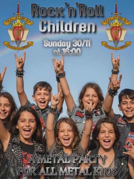 Ε, λοιπόν ήρθε η ώρα να γίνει το πρώτο party metal για τα παιδιά. Την Κυριακή 30 Νοεμβρίου από τις 16:00 και μετά ο σύλλογος Excalibur στη Θεσσαλονίκη θα ανοίξει τις πόρτες για τους μικρούς μας φίλους. Θα υπάρχει μίνι μπουφές και χυμοί για τα παιδιά (στη ζούλα ας φάει κι απο κάνας γονιός δεν έγινε κάτι)